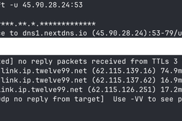 Hi - I'm currently unable to access 45.90.28.24 or 45.90.30.24 due to a routing issue at twelve99.net. I am on AT&T / AS7018. Traffic appears to drop at this 62.115.126.…