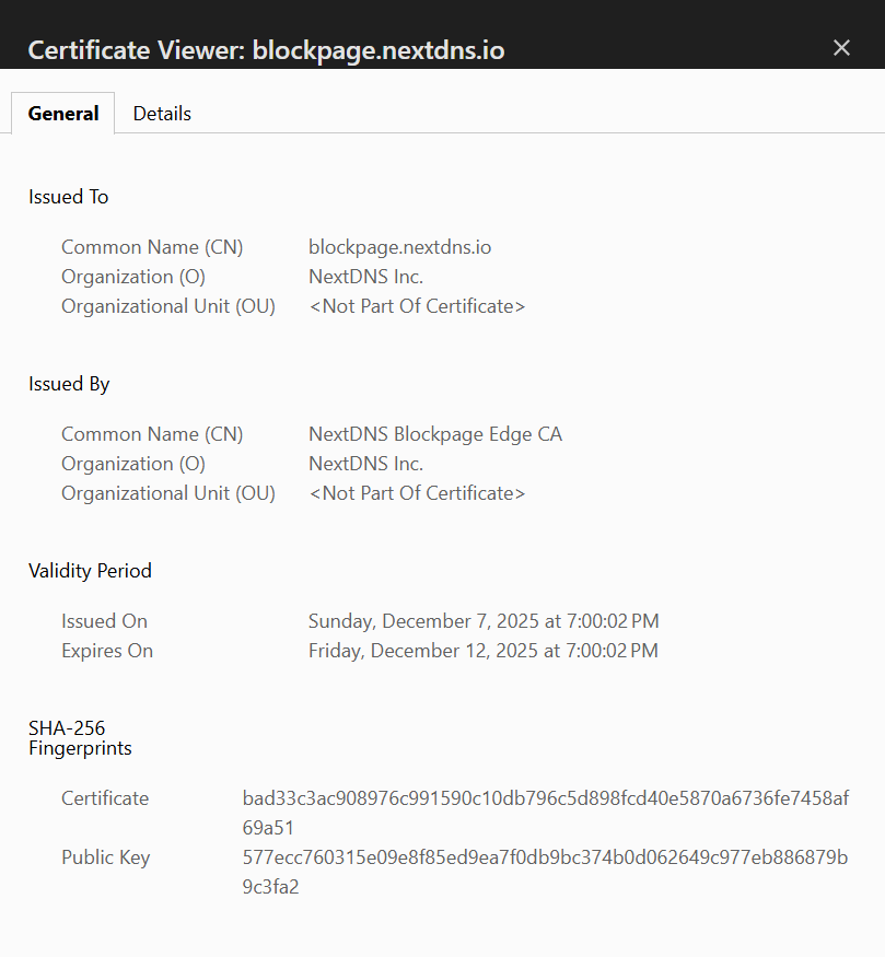 Though, it would be good if someone from Next DNS would address the reported issues with revoked certificates to even confirm or deny that Next DNS is at fault. Whitelisting the domain is not an option for me at this point, since I give my primary security software the benefit of the doubt, false positive or not. I like it to be overly sensitive when it comes to protecting my devices, and data 😁.