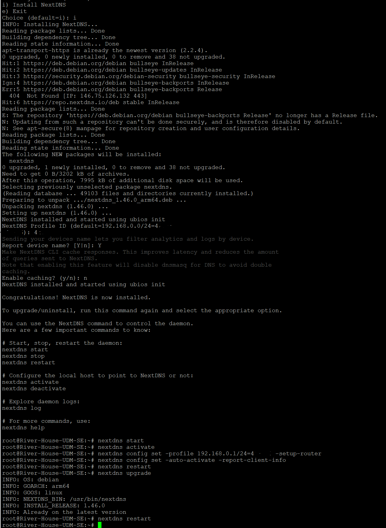 **One last note, when NextDNS upgrades the product, just go back to the UDM CLI and run