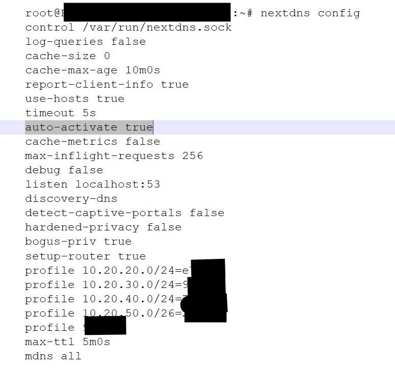 nextdns start nextdns activate nextdns config set -profile xxxxxx -profile 172.16.100.0/24=yyyyyy -setup-router nextdns config set -auto-activate -report-client-info nextdns restart