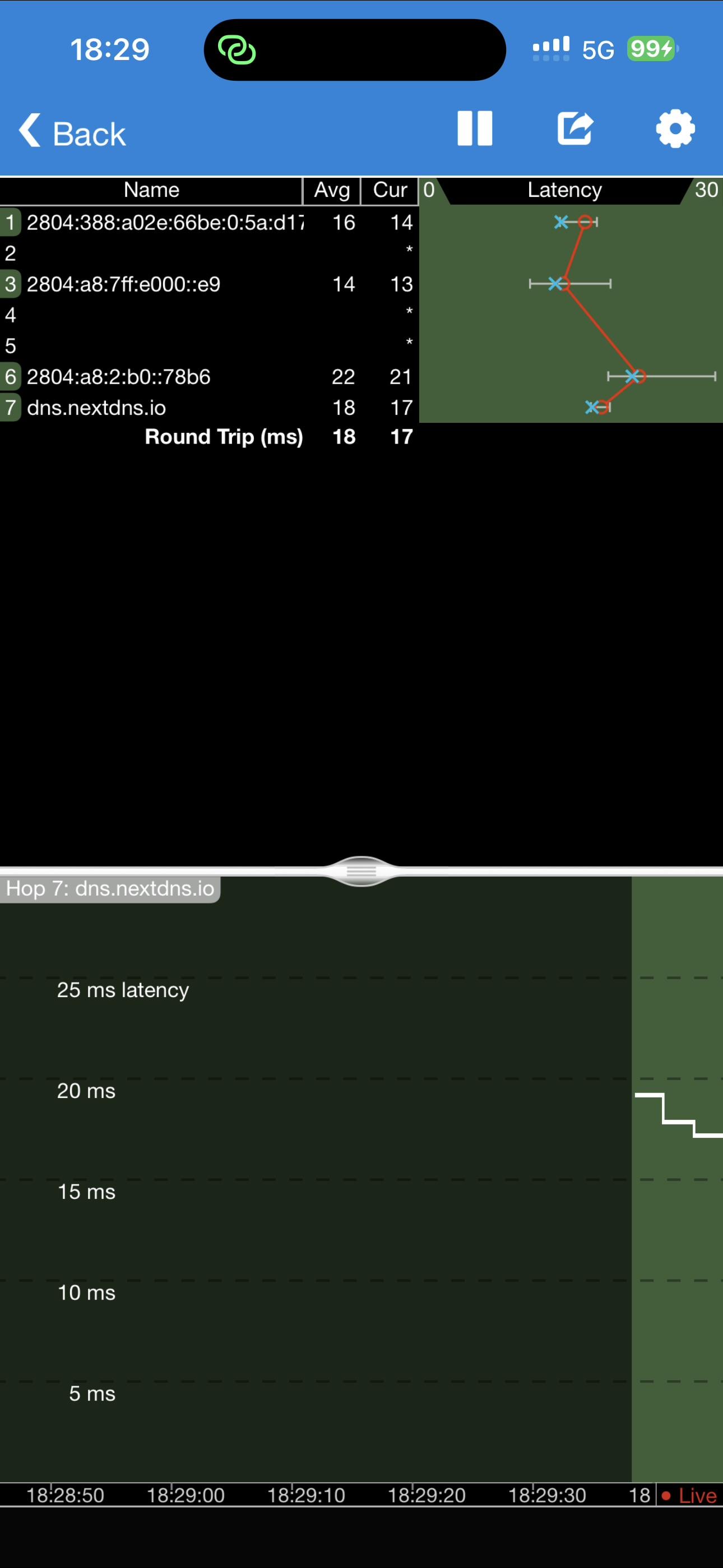 I run the diag from NextDNS on my Mac connected thru my iPhone.