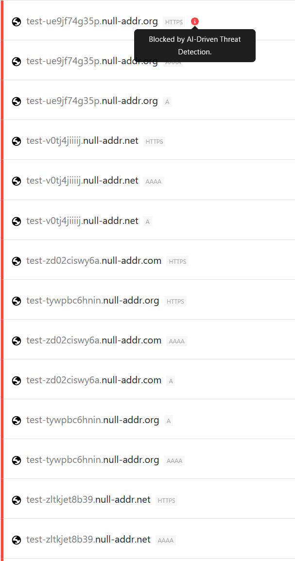 DNS check domains blocked by AI-Driven Threat Detection