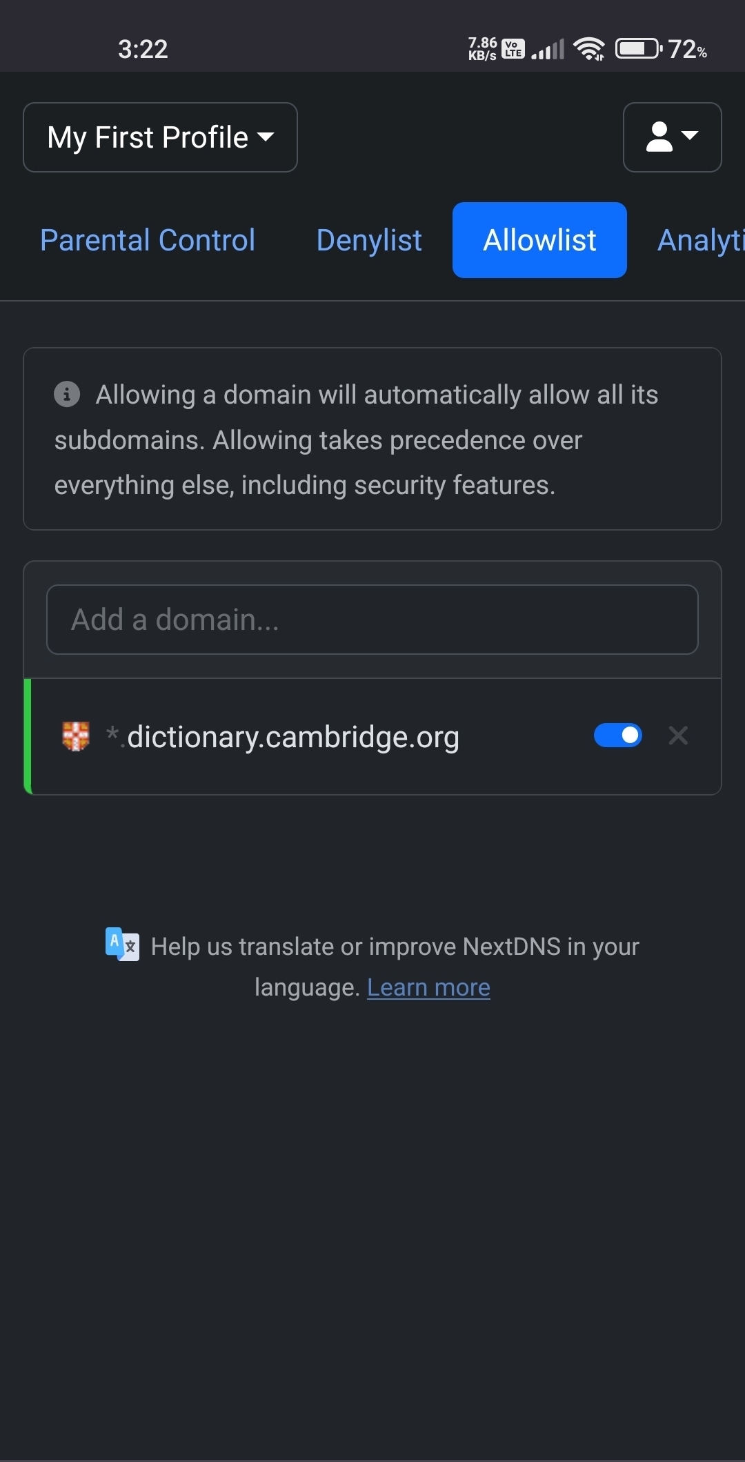 Cambridge dictionary is not opening on next dns even I added it Allowlist fix issue ASAP