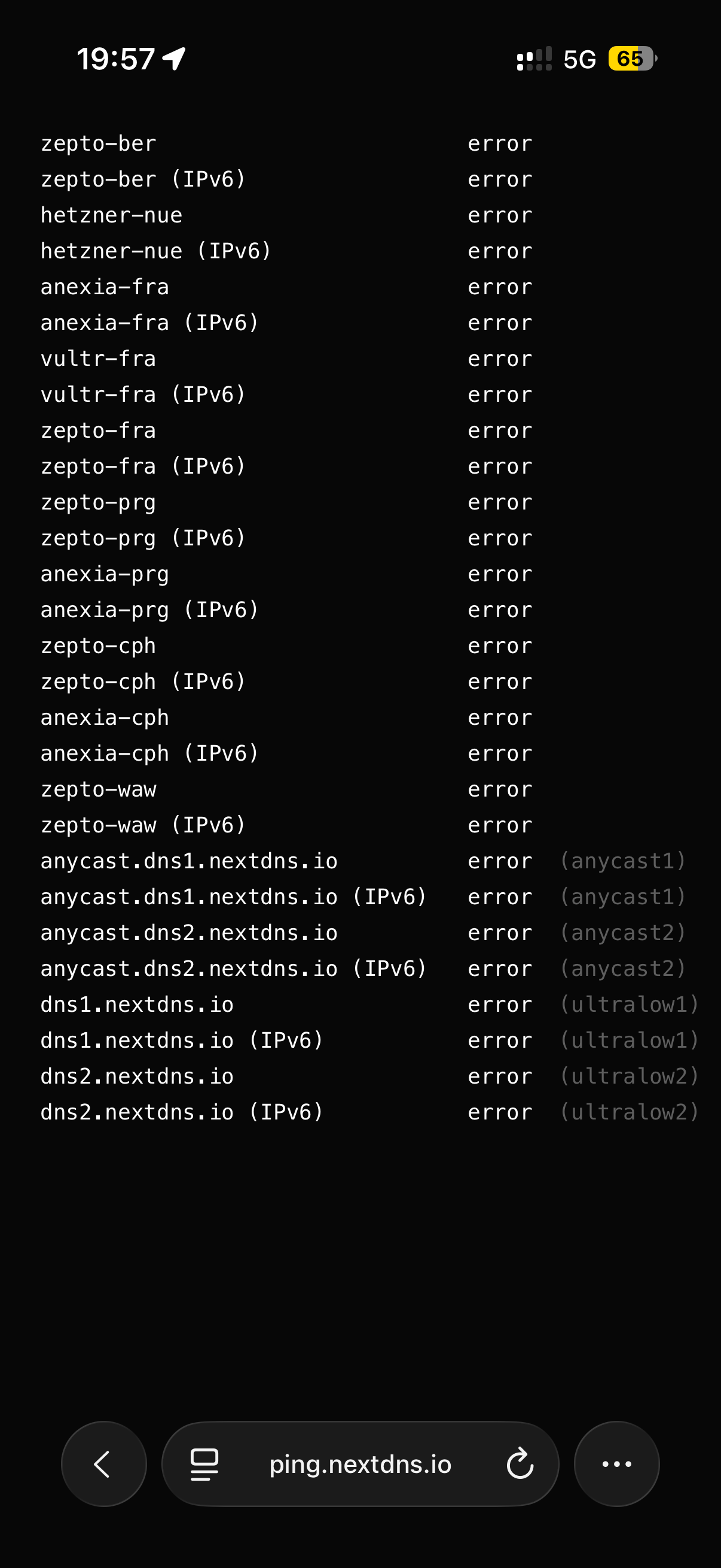 So option 1, Telekom and Vodafone blocks NextDNS, option 2 Apple blocks NextDNS. But with activated Private Relay, there are the errors in the check. Without Private Relay there is a blank site on ping.nextdns.io.