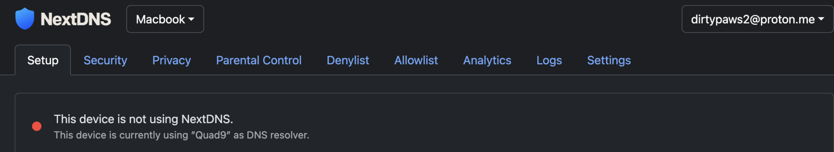 I installed it on my older iMac and Macbook Pro and it's telling me the Devise is not using NextDNS and under it says it's using Quad9 as DNS Resolver. I has my Macbook set up using Quad9 but deleted the profile before adding the NextDNS profile.