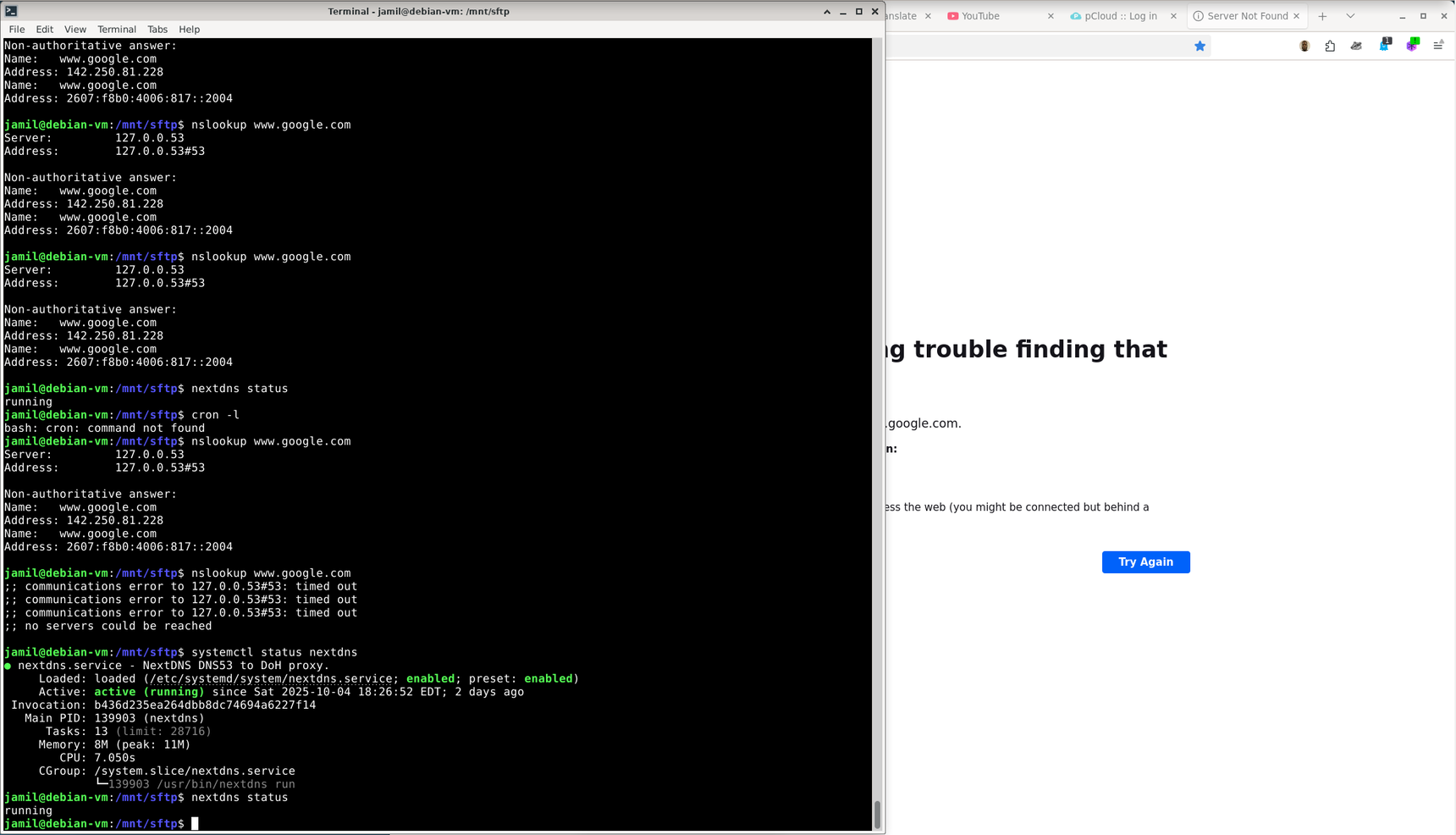 I am facing an issue where DNS look-ups fail after time with the NextDNS Linux service installed and running. The issue has been reproducible on a Debian Trixie install for days. I am now not reproducing this issue only after adding my changed IP address assigned by my ISP to my.nextdns.io under Linked IP. This IP address will change in the future. When it changes, the Linux tool will break again.