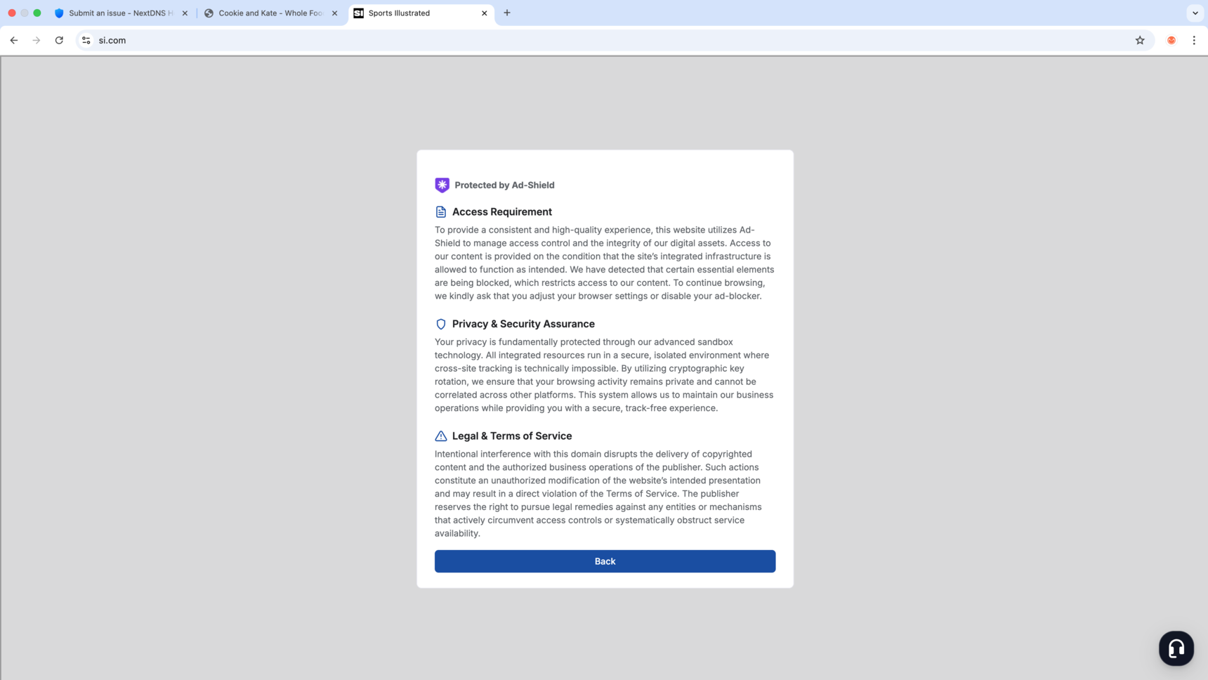 I’m using the "NextDNS Ads & Trackers blocklist" on macOS, and when I visit the sites below, a different screen is displayed instead of the original page. Is it possible to resolve this issue?