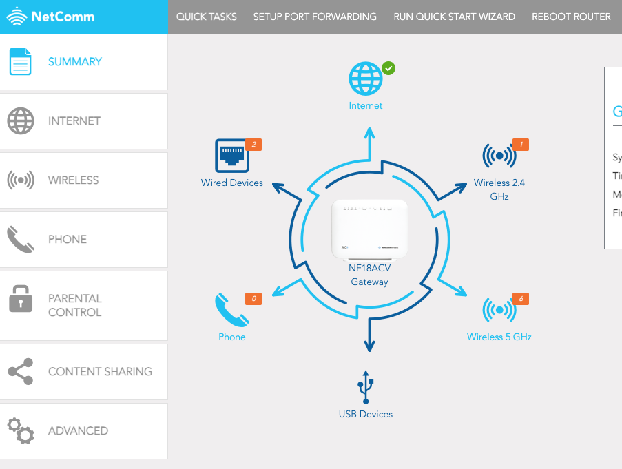 The router is a Netcomm NF18ACV. With a fairly recent firmware, being NC2-R6B014.EN