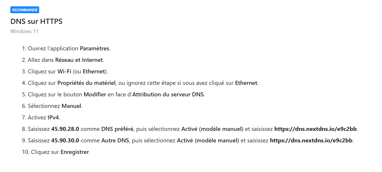 Je tenais à vous informer que depuis le début, cette config proposée pour Windows 11 n'a jamais fonctionné (il demande en plus de lier l'IP)